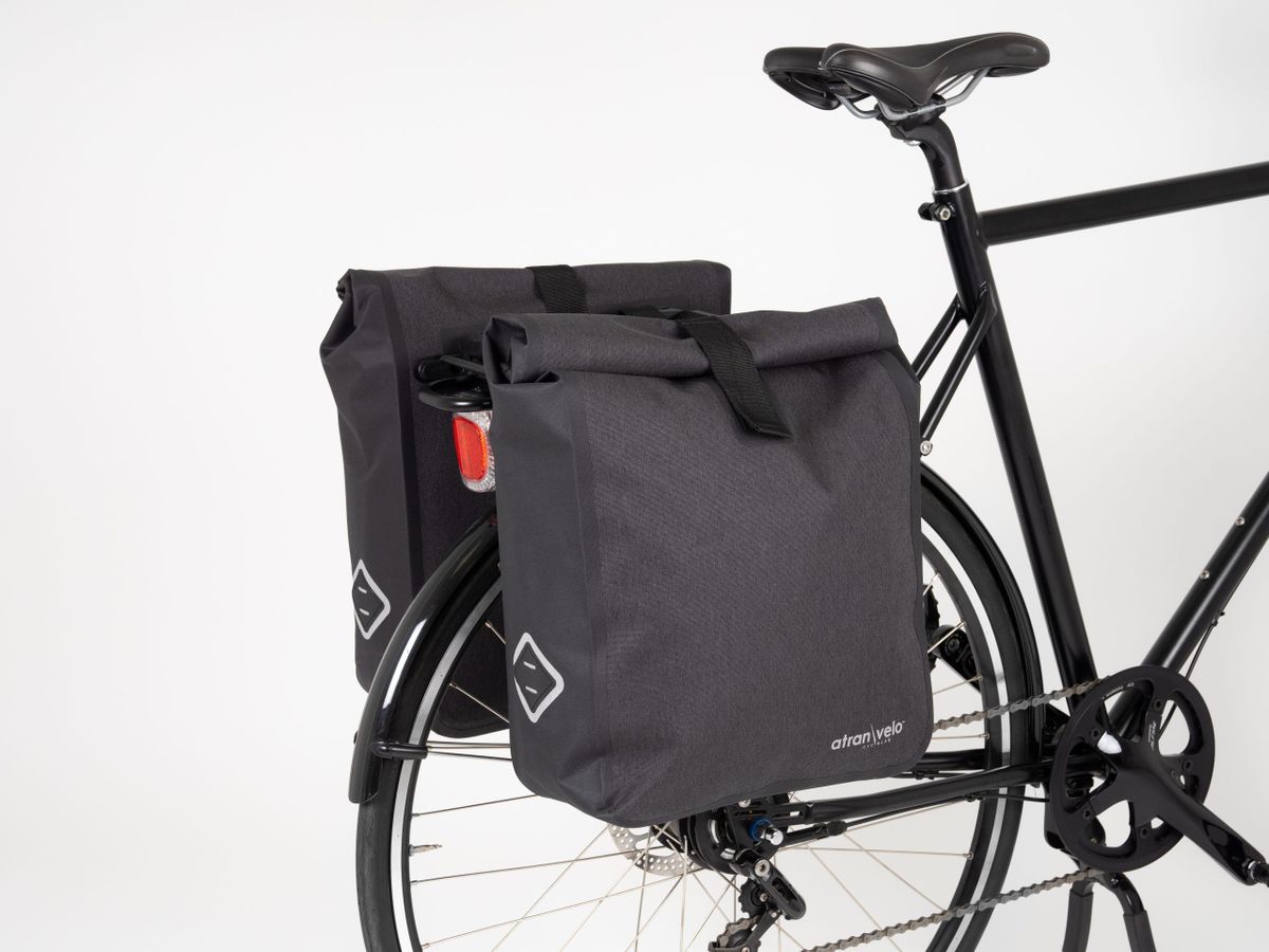 TRAVEL ist eine wasserdichte Doppel-Seitentasche mit grosszügigem Stauraum. Sie ist nicht nur mit AVS ausgestattet, sondern auch mit dem Triple-X-System von AtranVelo, das die Verwendung zusammen mit Top Bags und Körben ermöglicht.