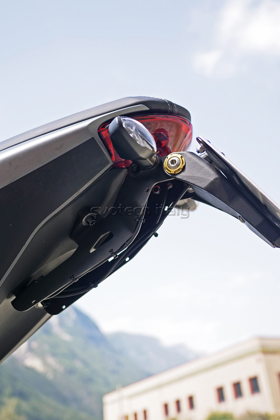 Der Nummernschildhalter enthält bereits ein spezielles LED-Licht mit Widerstand und einem spezifischen Anschluss für das Modell Speed Triple 1200 RS 2021-2022.