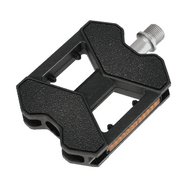 Ein Pedal mit einem thermoplastischen Körper, mit einer gefrästen Cr-Mo-Achse und einer rutschfesten Oberfläche.