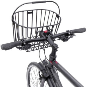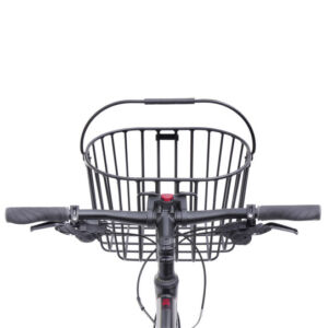 Panier en aluminium pour guidon stable, solide, léger et sans risque de rouille avec une poignée confortable et rigide.