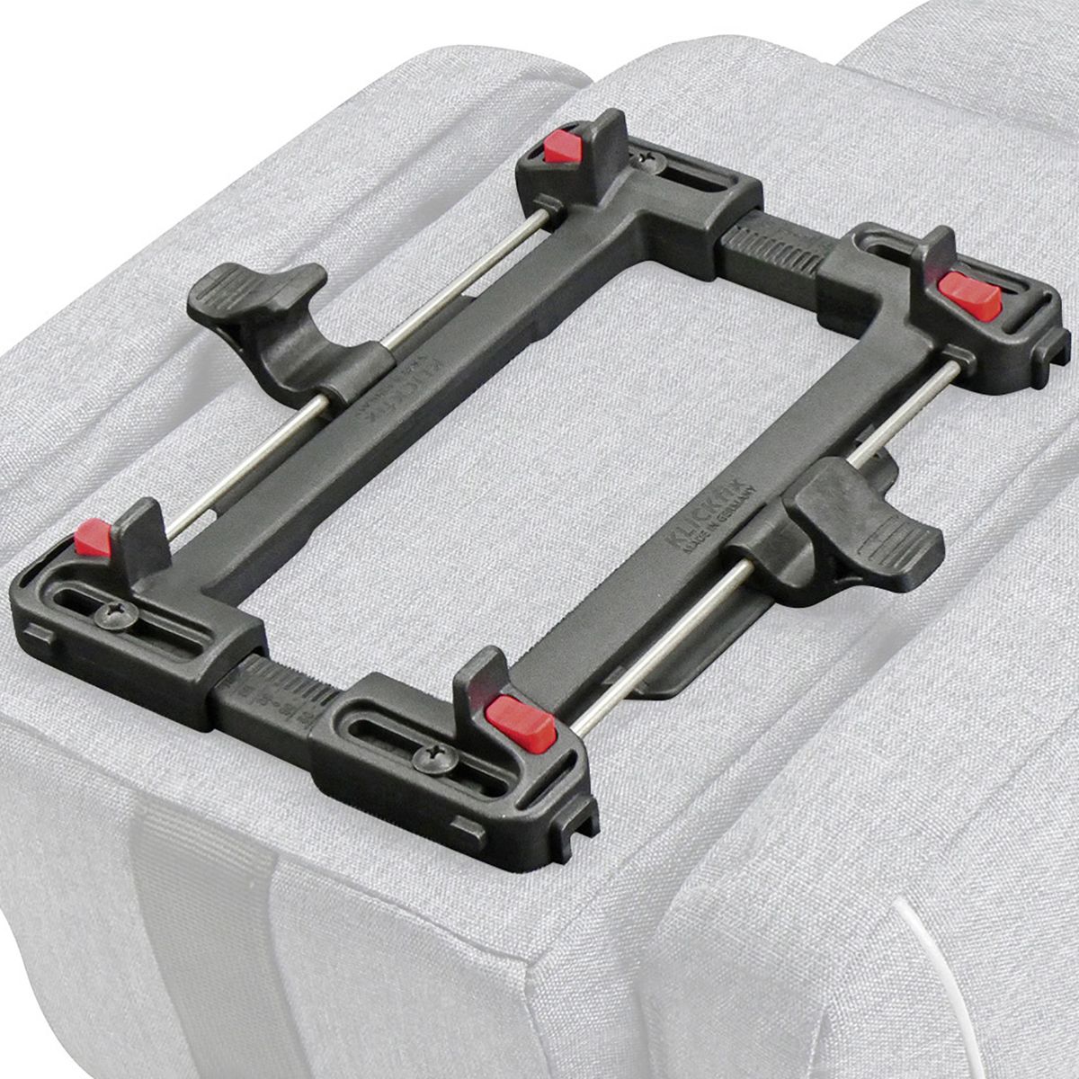 L'UniKlip fixe les sacs et les boîtes sur une grande variété de porte-bagages. Réglez la largeur une fois. Posez l'accessoire - tournez les leviers - c'est fait !