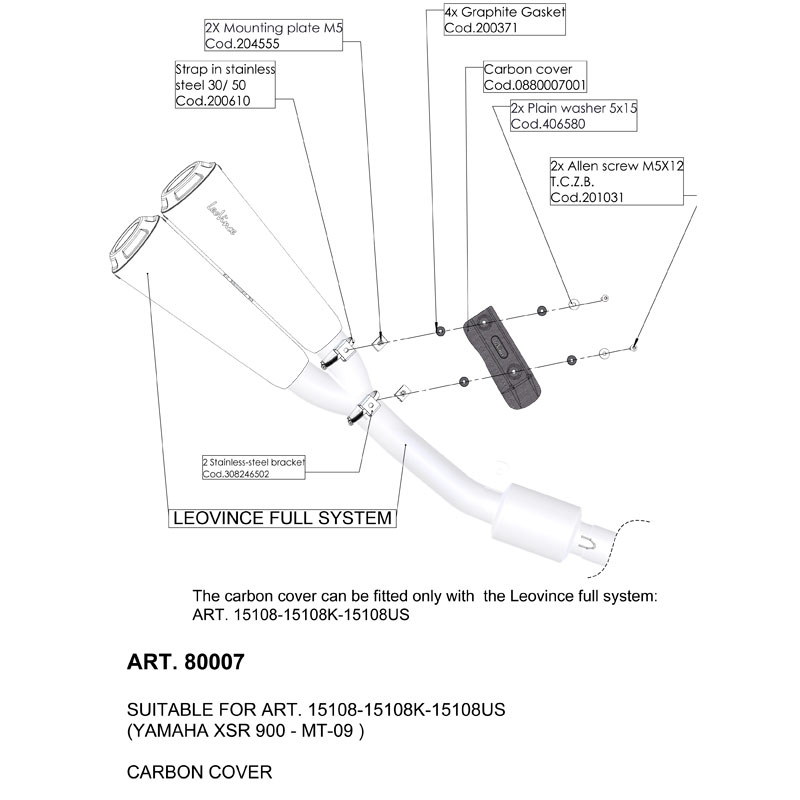 LeoVince Yamaha MT​-​09 ​/ XSR 900 GP DUALS Carbon Cover pour 15108K