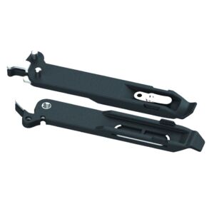 Démonté, cet outil contient deux leviers de montage ultra-résistants pour les pneus. Une fois assemblé, le Power Lever se transforme en une pince à chaîne avec une tête métallique stable, un crochet de fixation de chaîne et un compartiment supplémentaire pour l'antivol.