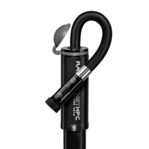 Mini-pompe très performante pour vélos de route. Son tuyau extensible permet de réduire la contrainte appliquée à la valve lors du gonflage.